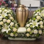 Bukiet tulipanów przyzdobionych kryzą i zielenią dekoracyjną.
