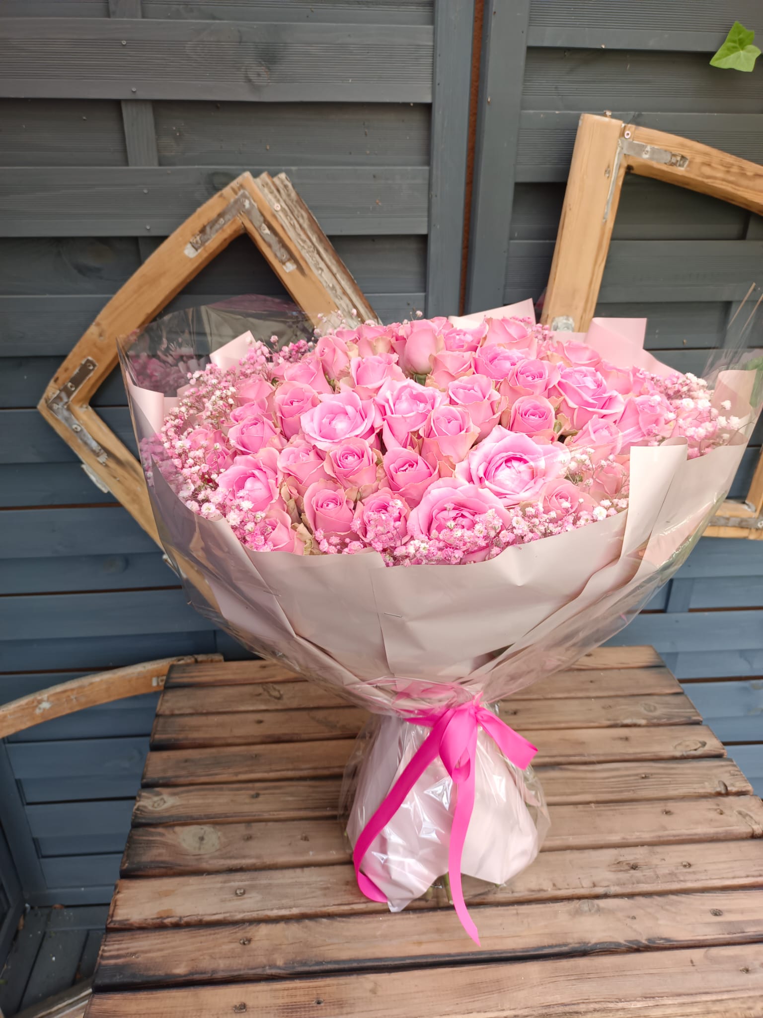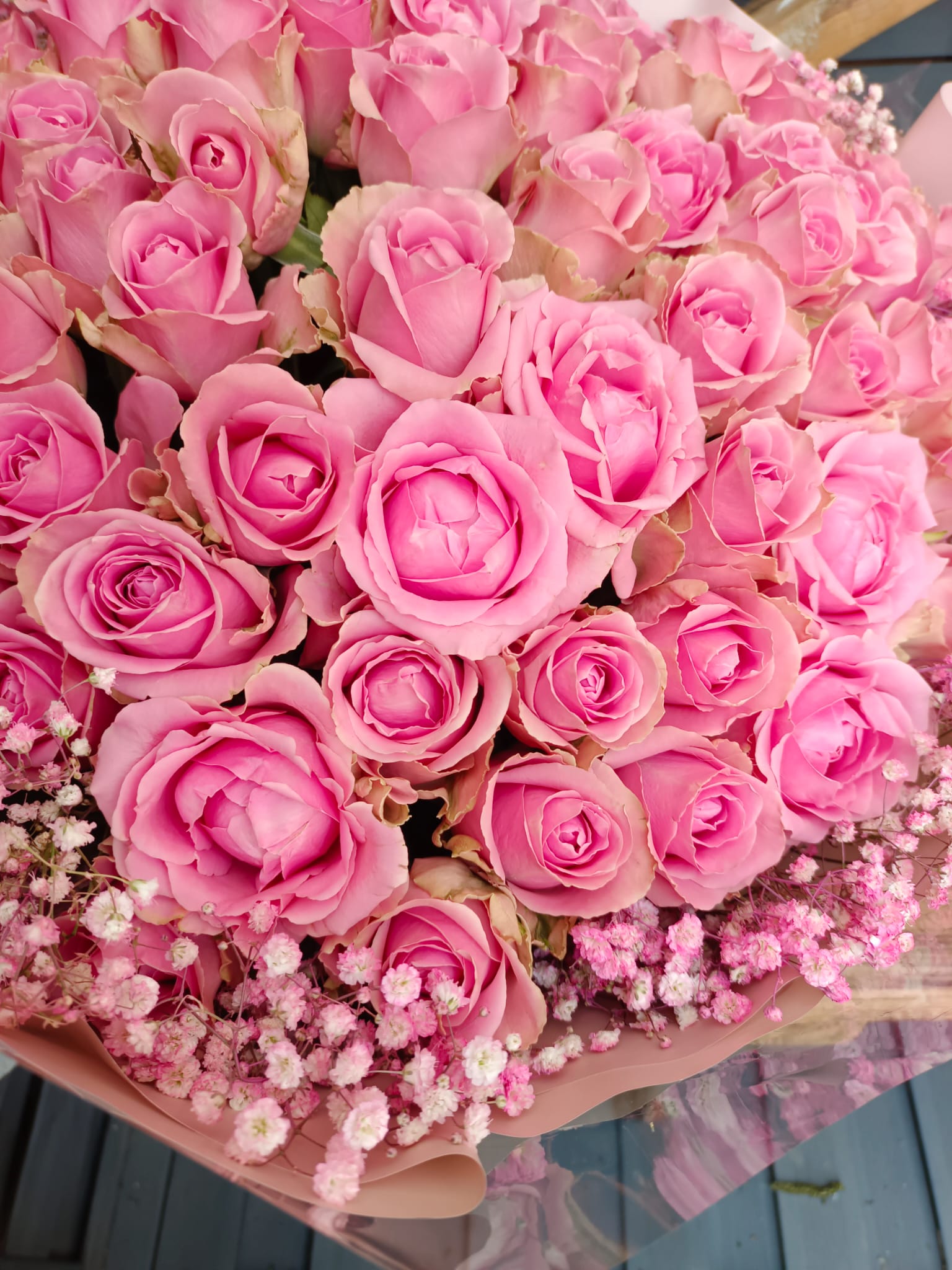 Wyjątkowy bukiet różowych róż otulonych elegancką kryzą oraz delikatną gipsówką, która podkreśla ich piękno. Pudrowy odcień róż symbolizuje czułość i wdzięk, a lekka gipsówka dodaje całości klasy i harmonii. To kompozycja stworzona dla osób ceniących ponadczasową elegancję, idealna na prezent pełen emocji i dobrego smaku.